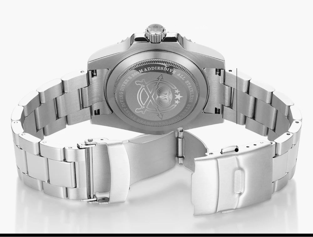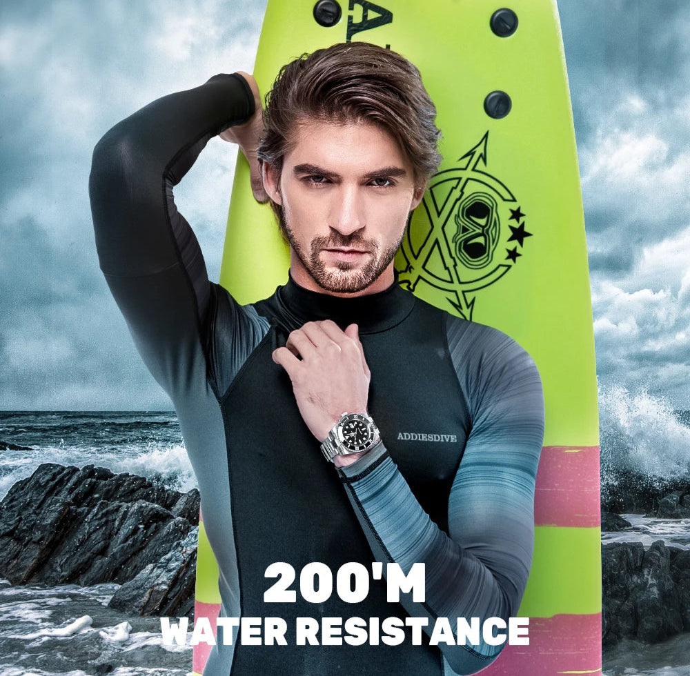 Com movimento de quartzo Miyota 2115, o Relógio Addies garante precisão e longa durabilidade, acompanhado de uma caixa em aço inoxidável 316L e um bezel cerâmico. Seu design esportivo e moderno combina perfeitamente com um estilo casual ou aventureiro, oferecendo resistência e os detalhes de um modelo profissional. Sua resistência à água de 200 metros e a presença de elementos luminosos, como o mostrador e o bezel, tornam-no perfeito para qualquer tipo de atividade, seja em terra ou água. O design clássico e a alta qualidade dos materiais proporcionam a combinação ideal de estilo e resistência.