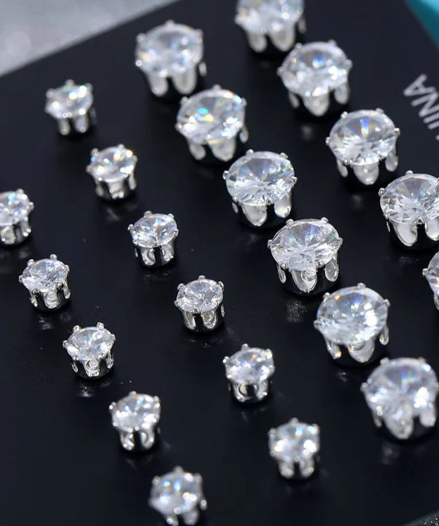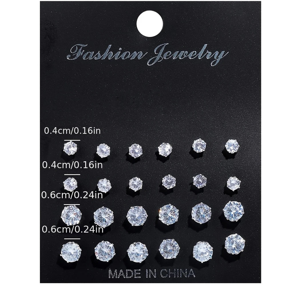 Feitos de zircônia cúbica de alta qualidade, esses brincos são elegantes e duráveis, com um brilho intenso. O conjunto oferece versatilidade, podendo ser usado de várias maneiras, seja para um visual mais clássico ou trendy. A cartela contém 12 pares, perfeitos para complementar diferentes estilos e ocasiões. Com design geometrico e acabamento prata, esses brincos são ideais para diversas ocasiões, como festas, casamentos ou para o uso diário, adicionando um charme discreto ao look.