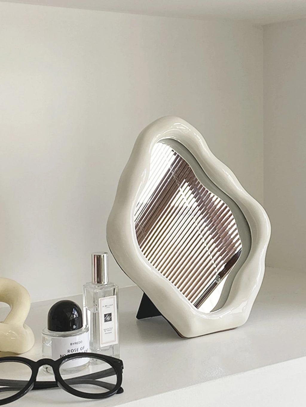Este espelho é ideal para ser usado como espelho de maquiagem no quarto ou banheiro, além de funcionar como um item decorativo elegante para sua sala de estar. Com um design inspirado no estilo francês, ele é perfeito para complementar sua decoração e adicionar um charme especial. Este espelho de formato irregular possui um acabamento em prata eletroformada, refletindo um visual refinado e atemporal.